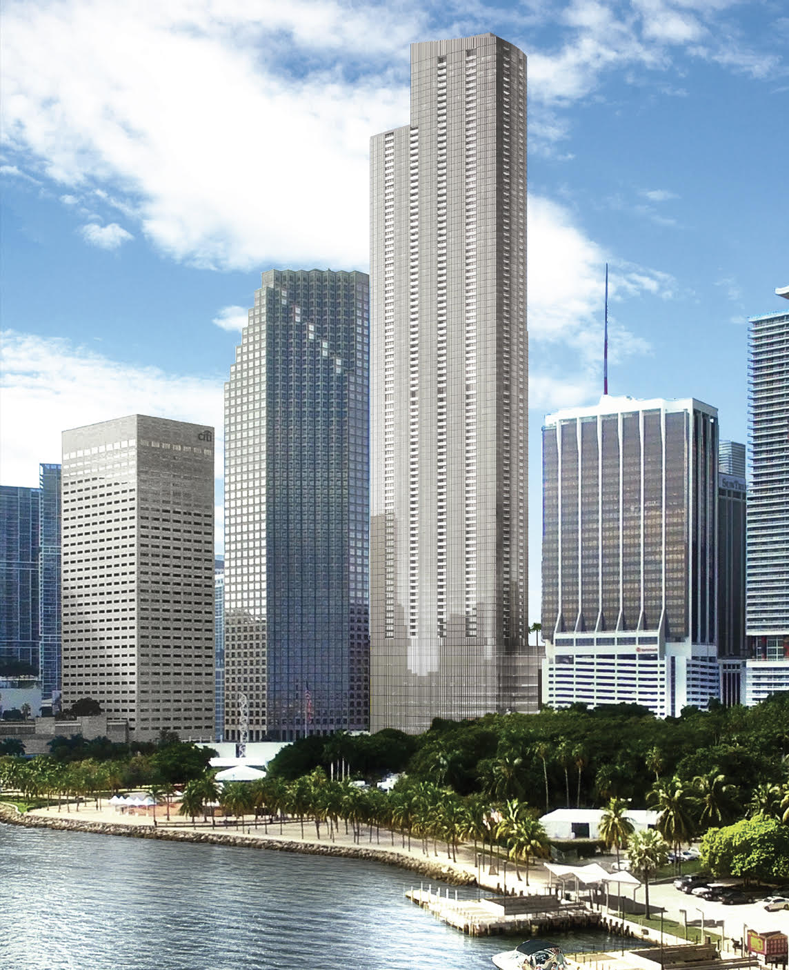 FECR’s grandest project to date, through its affiliate Northwestern Capital Corporation, will be the new One Bayfront Plaza. This global landmark will be a mixed-use development of contemporary modern design, encompassing a total of over three million square feet, principally-comprised of premier, class AAA office space, together with a luxury convention hotel and high-end residences. Additionally, within the pedestal base that will comprise two full city blocks, the edifice will include an upscale retail mall and a parking garage. The tower will be Miami’s signature project and the tallest building in the skyline, reaching a height of 1,049 feet above Biscayne Bay, with 360-degree, panoramic views truly beyond compare.